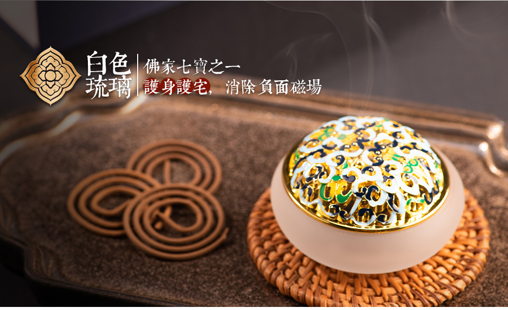 財神招財藏香1.5H盤香120片+ 圓滿晶燦白 琉璃香爐