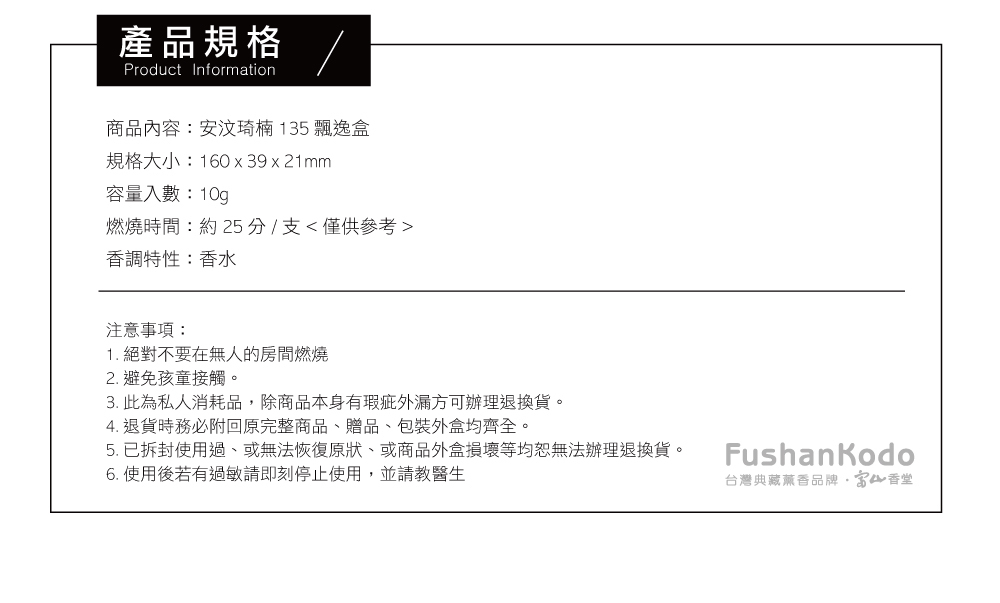 香品長度 : 135mm