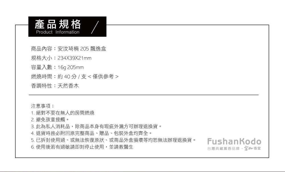 香品長度 : 205mm