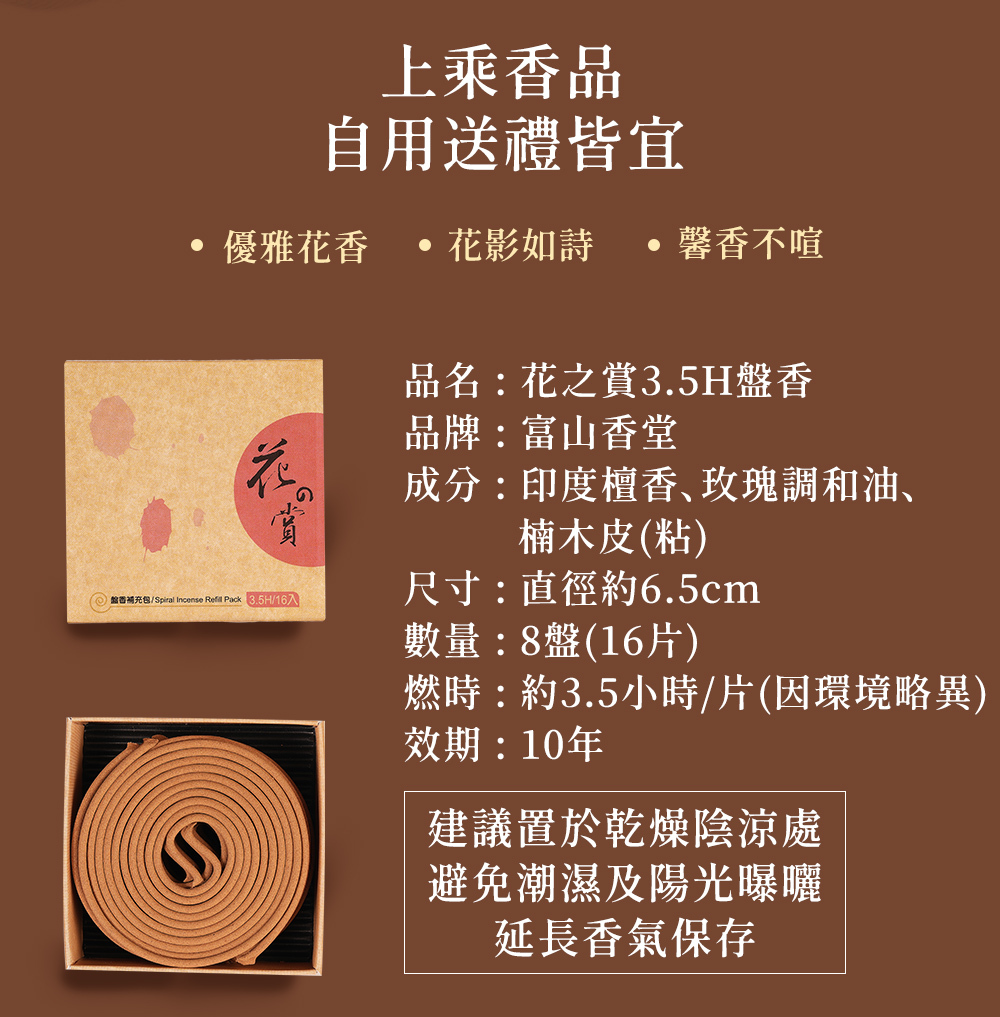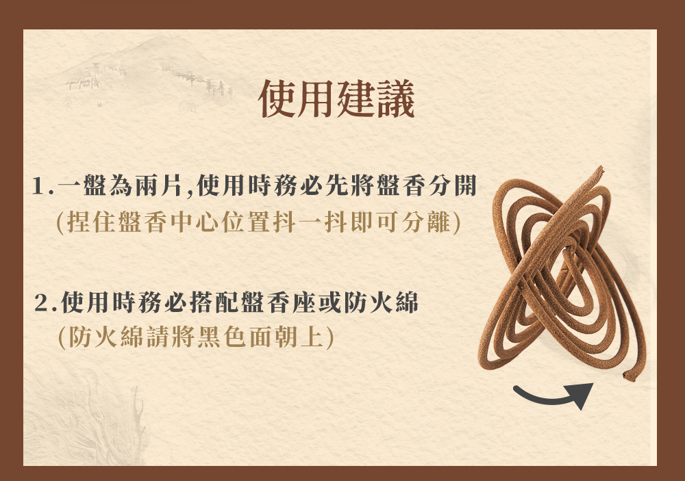 盤香燃燒時間 : 約3.5小時 (依環境風量而定)
