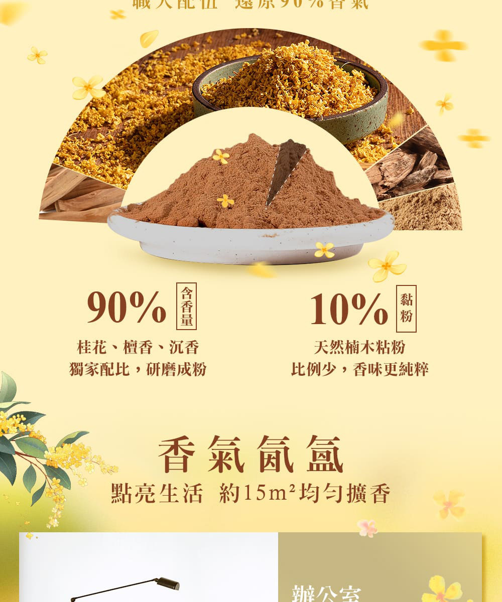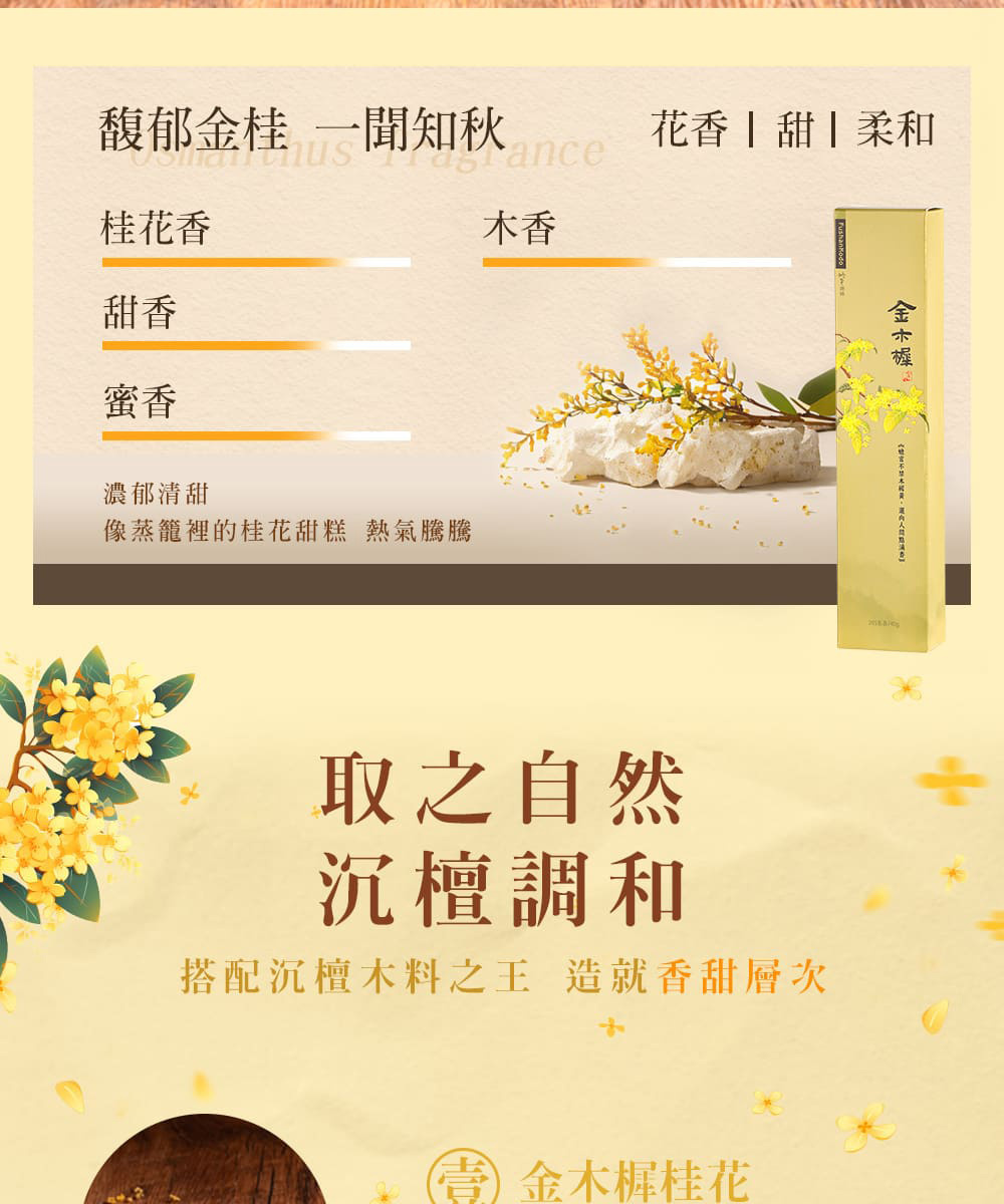 成分 : 沉香木、檀香木、桂花、楠木皮(粘)
